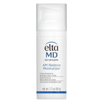 EltaMD AM Restore Moisturizer helps protect and replenish skin’s moisture barrier. Willow bark extract helps improve natural skin exfoliation and Niacinamide (vitamin B3) helps to improve skin tone and diminish the look of age spots. The result is visibly brighter, smoother skin. Non-comedogenic, fragrance-free, dye-free.