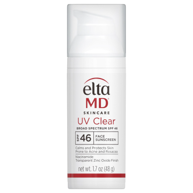 EltaMD® UV Clear Broad-Spectrum SPF 46 sunscreen is formulated with 5% high-purity niacinamide (vitamin B3) to help reduce the appearance of blemishes, discoloration, and photo-damage.